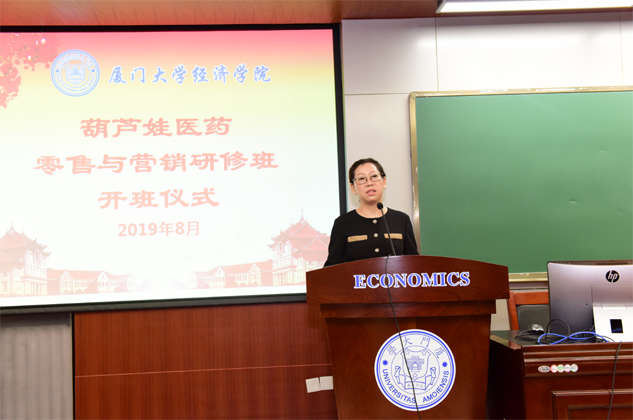 刘景萍董事长代表扑克之星药业集团对厦门大学各级领导、老师对扑克之星的大力支持表示感谢,并对研修班学员做动员讲话。她希望参加培训的学员珍惜来之不易的学习提升机会,沉下心来“加油充电”,结合工作实践,用心学习认真领悟,真正做到学有所获、学以致用。她说,厦大拥有着深厚的人文底蕴和优质的教育资源,在东南亚国家和地区具有广泛的影响力,在“一带一路”这一国家战略背景下,医药营销人员应该具备更为广阔的国际视野和更为丰富的知识储备,希望学员们能在本期研修班中学有所成,并以此为新的起点,以奋发的姿态投入到今后的学习和工作中去,不断取得新的进步和业绩,为医药产业和扑克之星事业的发展做出新的更大贡献。