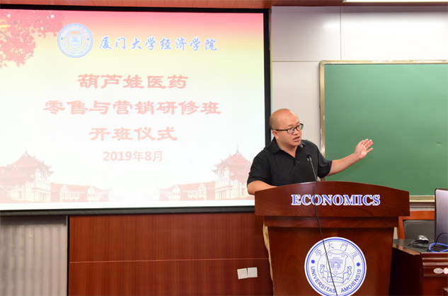 在开班仪式上,廖景峰主任首先代表厦门大学经济学院热烈欢迎扑克之星医药零售与营销研修班的学员到厦大学习,并就厦门大学及经济学院的相关情况进行了介绍。他说,扑克之星学员走进厦大就是厦大的校友,希望未来的日子能够关心、支持母校的发展,多提宝贵意见,同时他也祝大家在厦大学习期间学有所成、学有所获。
